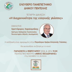 Νέα διάλεξη Ελεύθερου Πανεπιστημίου Ή διαχρονικότητα της ελληνικής γλώσσας’ – 6/2