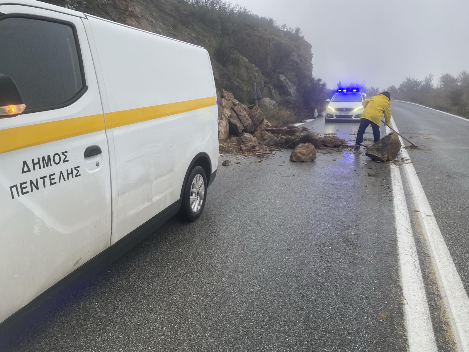 Η κυκλοφορία θα αποκατασταθεί μετά την απομάκρυνση των βράχων από βαρέως τύπου όχημα του Δήμου Πεντέλης.