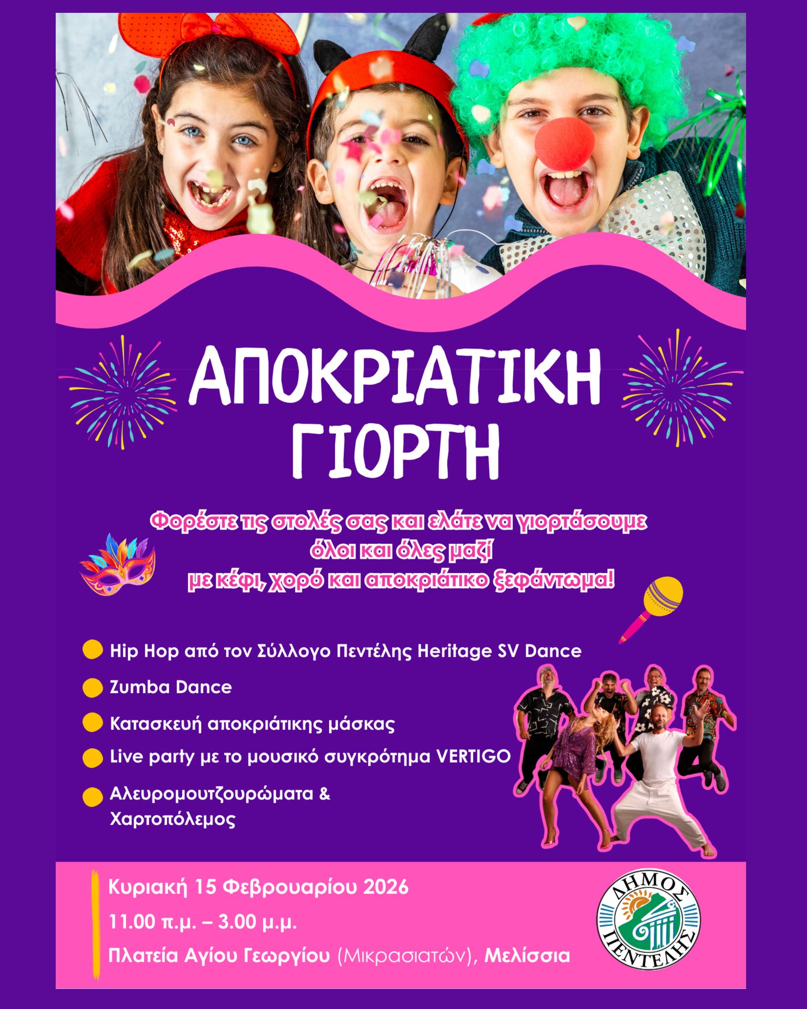 Γιορτάζουμε μαζί τις Απόκριες στην Πλατεία Αγίου Γεωργίου την Κυριακή 15/2 !