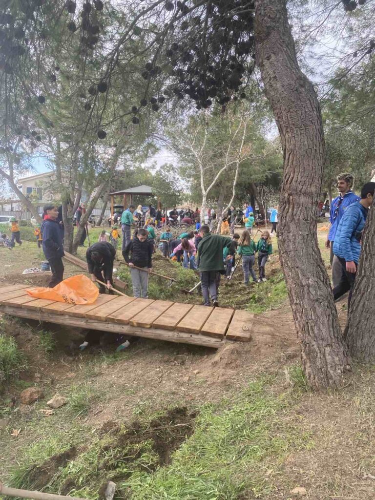 Η δενδροφύτευση περιλάμβανε μεγάλα πλατύφυλλα δέντρα, και η ανάπλαση την ανακατασκευή των ξύλινων κατασκευών του χώρου — της πύλης, του κιόσκι και ενός ξύλινου γεφυριού — από τους ίδιους τους προσκόπους, με εθελοντική εργασία και μεράκι.