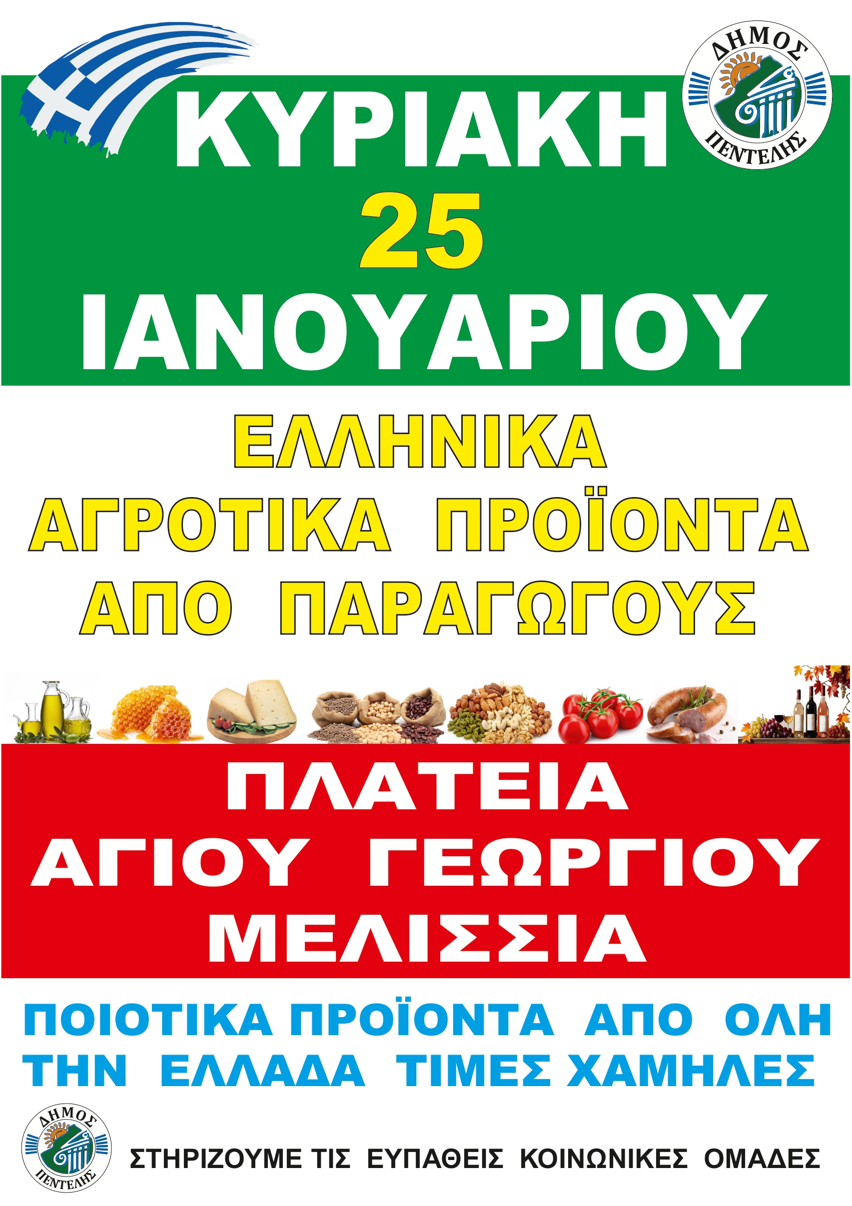 Δράση διάθεσης Ελληνικών αγροτικών προϊόντων από παραγωγούς στην Πλατεία Αγίου Γεωργίου – Κυριακή 25/1