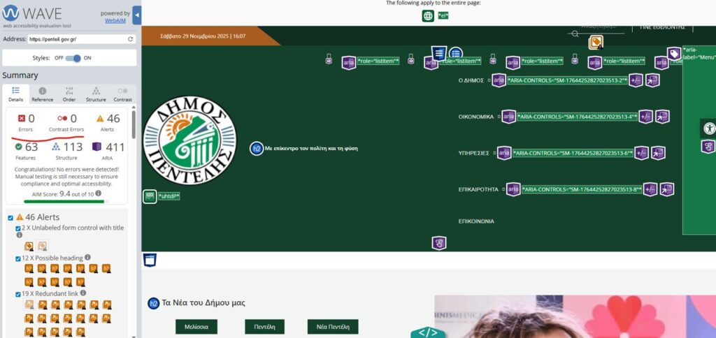 Ο Δήμος Πεντέλης ανακοινώνει με ιδιαίτερη ικανοποίηση την ολοκλήρωση της πλήρους συμμόρφωσης του επίσημου διαδικτυακού του τόπου με τις προδιαγραφές WCAG (Web Content Accessibility Guidelines), που αποτελούν το διεθνές πρότυπο για την προσβασιμότητα στο διαδίκτυο.