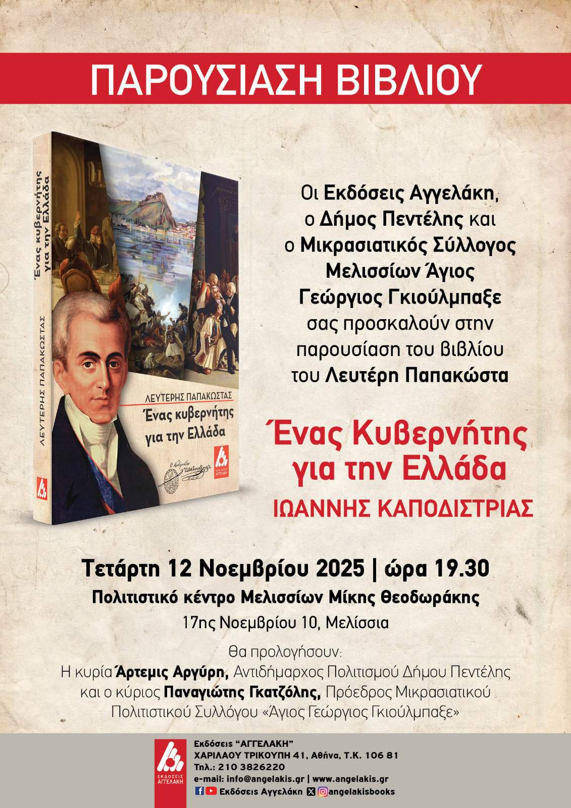 Παρουσίαση βιβλίου του Λευτέρη Παπακώστα – 12/11 στο Πολιτιστικό Κέντρο Μελισσίων