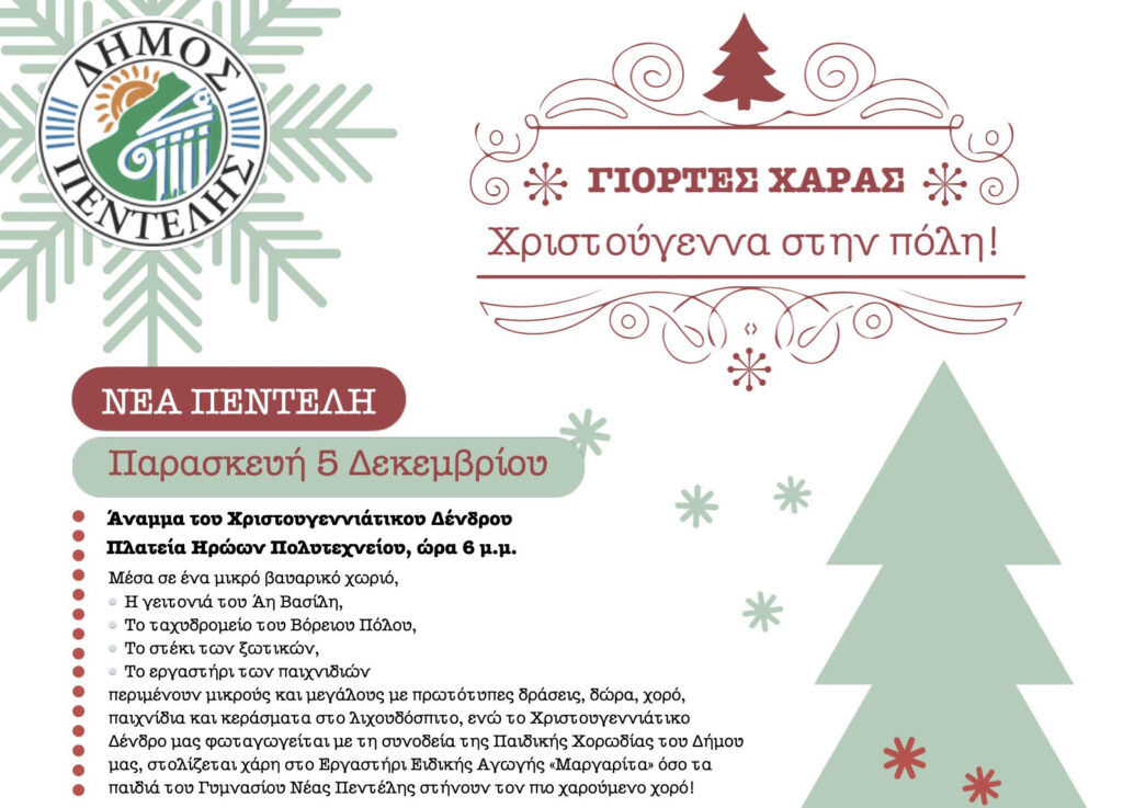 NEA ΠΕΝΤΕΛΗ – ΠΑΡΑΣΚΕΥΗ 5 ΔΕΚΕΜΒΡΙΟΥ