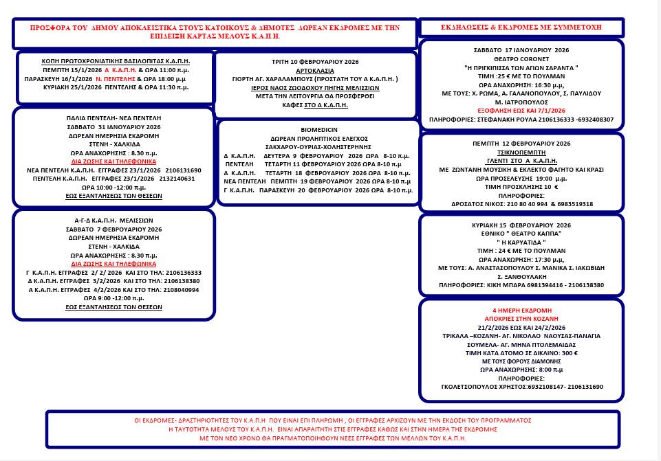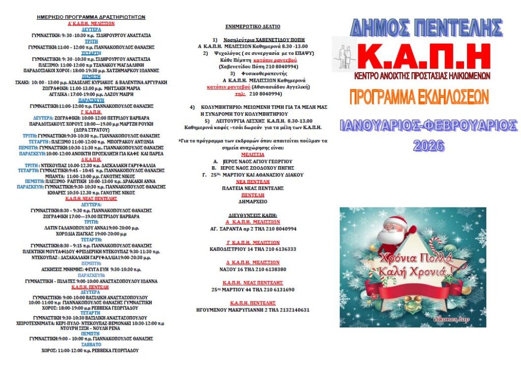 Πρόγραμμα δράσεων ΚΑΠΗ Δήμου Πεντέλης Ιανουαρίου & Φεβρουαρίου