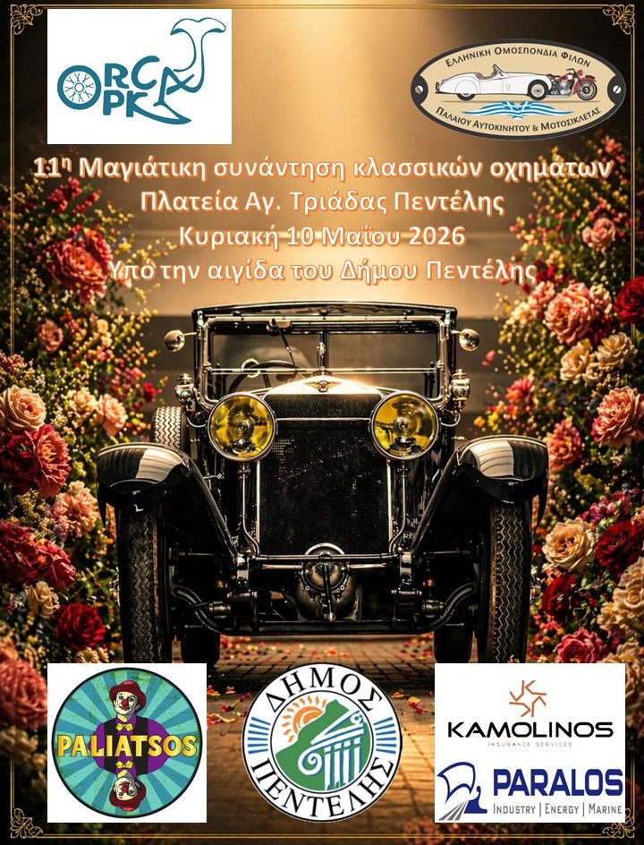 Η ΟΡΚΑ – Οργάνωση Εκδηλώσεων Κλασικού Αυτοκινήτου, υπό την αιγίδα του Δήμου Πεντέλης, διοργανώνει την 11η Μαγιάτικη Συνάντηση Κλασικών Οχημάτων στην Πλατεία Αγίας Τριάδας Πεντέλης.