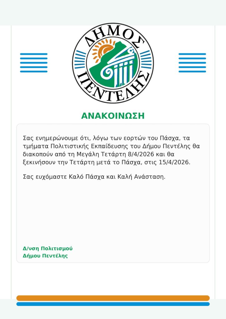 Αλλαγές στο ωράριο του Πολιτιστικού Κέντρου λόγω Πάσχα