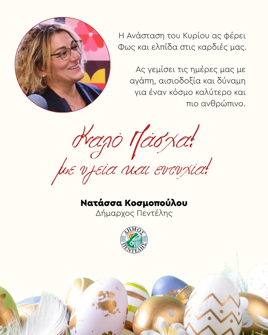 Ευχές της Δημάρχου Νατάσσας Κοσμοπούλου για Καλή Ανάσταση και Καλό Πάσχα!