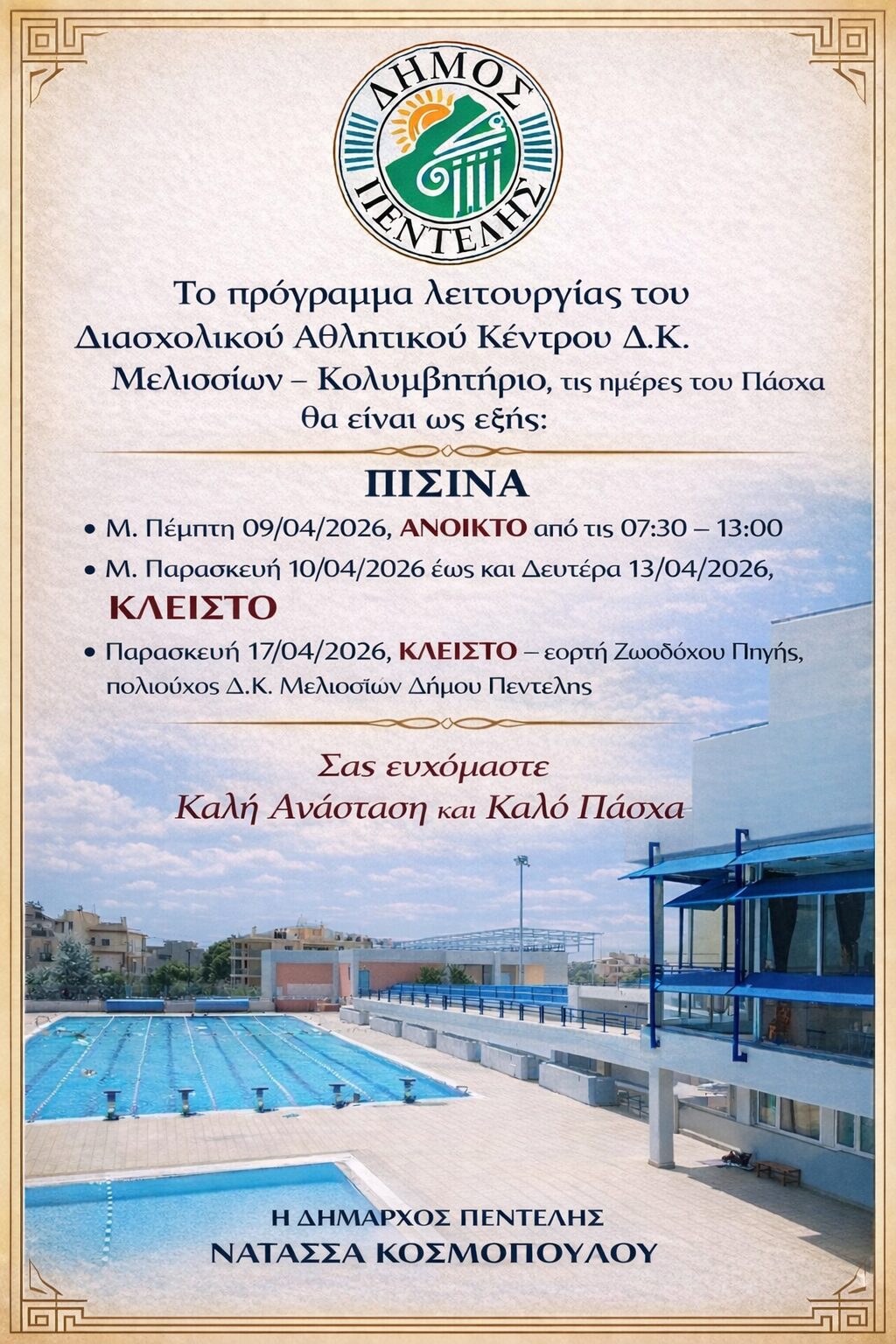 Πρόγραμμα Λειτουργίας ΔΑΚ κατά την περίοδο του Πάσχα